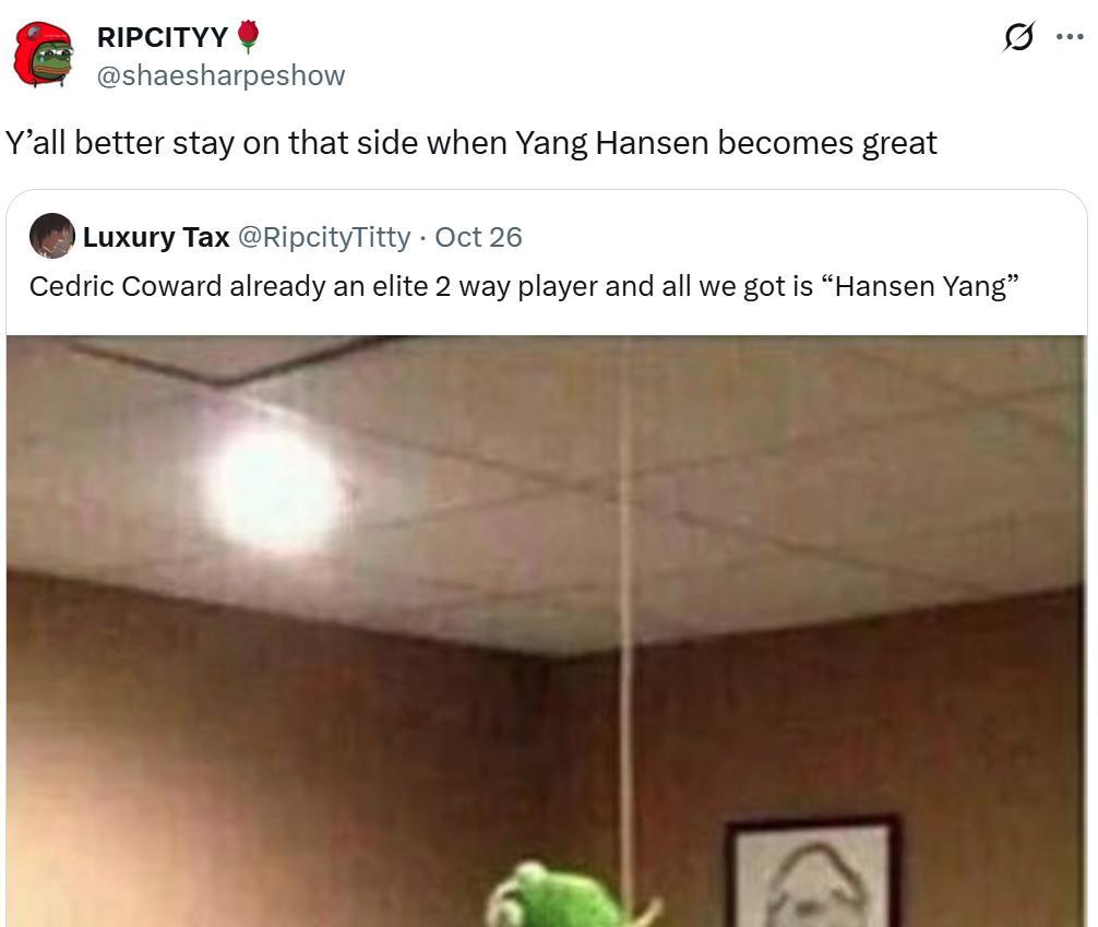 并且配文:“科沃德已经是一名出色的攻守兼备球员,而我们只得到了杨瀚森。”但也有坚持力挺杨瀚森的开拓者媒体,RIPCITYY转发驳斥道:“等杨瀚森打好了到时你可别来站队。”