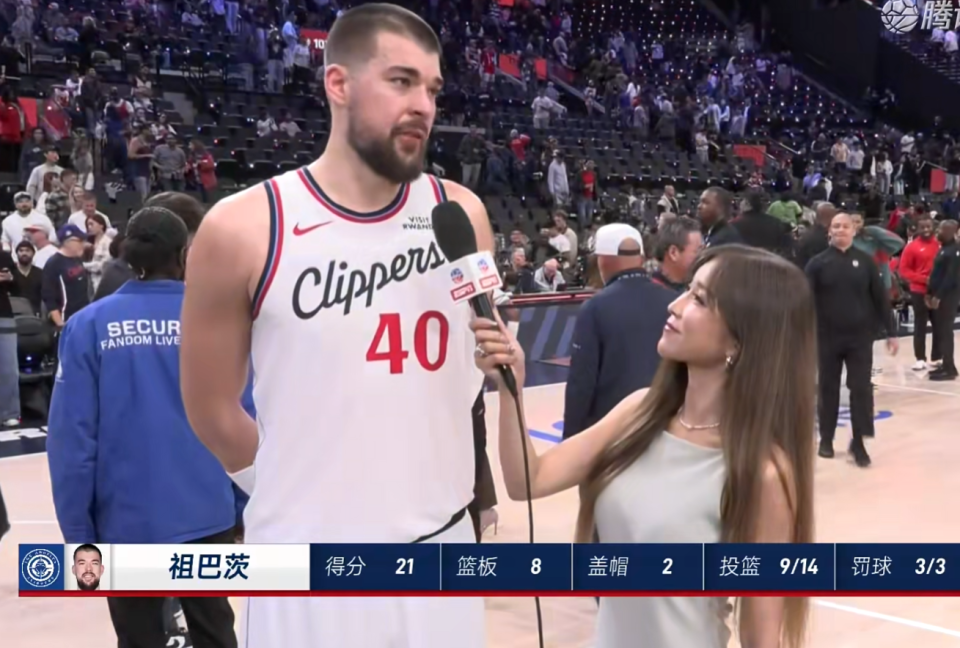 北京时间10月27日,在一场激烈的NBA常规赛中,快船队以114:107战胜开拓者队。全场比赛,快船中锋祖巴茨表现神勇,14投9中狂砍21分8篮板,命中率高达64.3%,几乎以一己之力打爆了开拓者的内线。然而,赛后祖巴茨的发言却引发了广泛关注——他大力表扬了本场被弃用的开拓者中锋杨瀚森,直言其天赋异禀,未来可期。