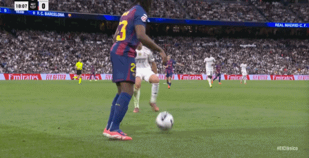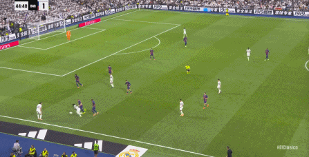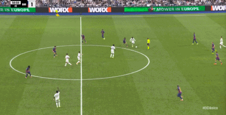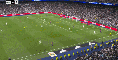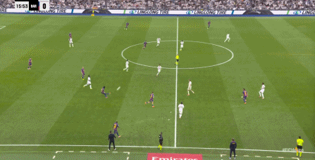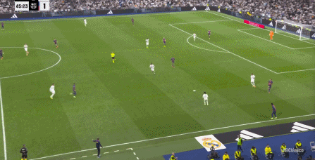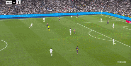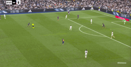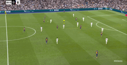 这个时候,比赛的天平已经在向皇马倾斜,但足球比赛终归和运气等因素紧密相关,所以在第34分钟,巴塞罗那通过带球深入到贝林厄姆一侧,一度制造了开场以来的最好机会: