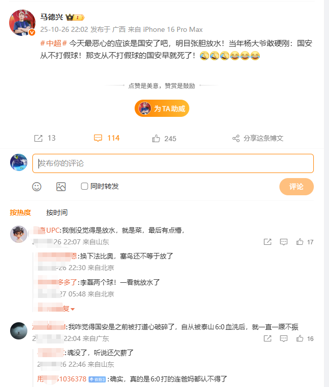 在中超联赛的众多队伍中,敢于公开宣称自己从未涉足假球的球队并不多见,北京国安便是其中之一。尽管在长达30多年的球队历史中,北京国安仅收获过一次联赛冠军,但其球迷始终以球队的清白自居,并时常对那些被指打假球的球队投以嘲笑。然而,这一次,北京国安却意外地成为了体坛周报副主编马德兴愤怒批评的对象。