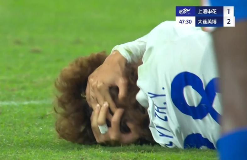 第48分钟,吕焯毅倒地,却不幸被陈晋一踢到了后脑勺