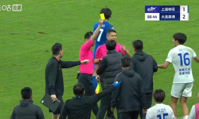 第89分钟,李国旭不满判罚被出示黄牌,边裁与他发生口角