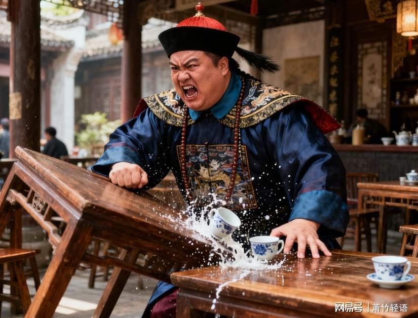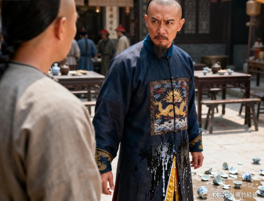 茶水溅在他的龙袍上,茶杯碎片散落一地,整个茶馆瞬间安静得可怕。
