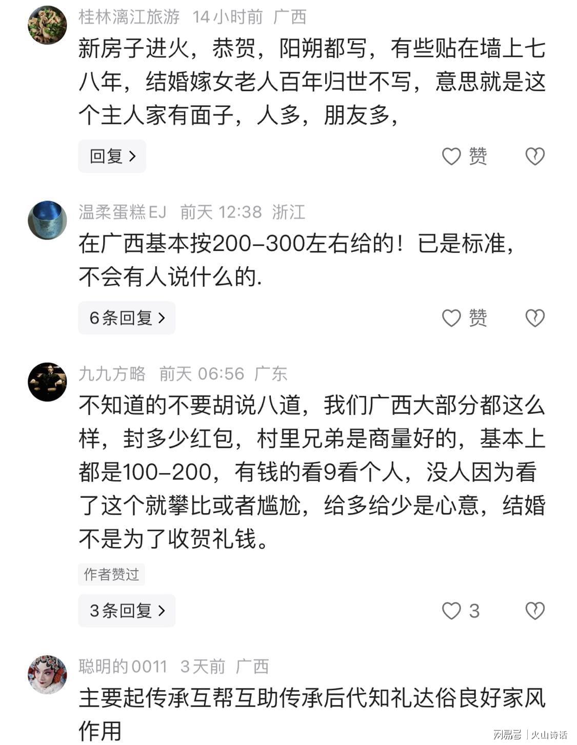 不过,也有网友为这一习俗辩护。他们表示,在广西的大部分地区,封红包的金额都是村里兄弟商量好的,基本上都是100-200元。没人会因为看了这个就攀比或者尴尬,给多给少都是心意,结婚不是为了收贺礼钱。