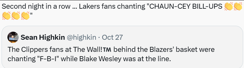 据开拓者跟队记者Sean Highkin报道,比赛期间湖人主场球迷集体高喊“昌西-比卢普斯”(Chauncey Billups)的名字,试图干扰开拓者球员的罚球节奏。这一行为并非偶然,而是与近期轰动NBA的重大丑闻密切相关。