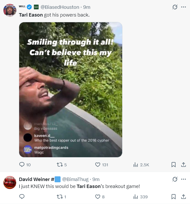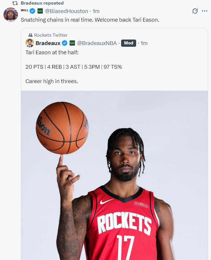 火箭记者和休斯顿媒体纷纷再次发声,称赞伊森已经找回了状态。伊森上半场命中5个三分球,也创造了他的职业生涯新高,这无疑是对他外线投篮能力的一次有力证明。