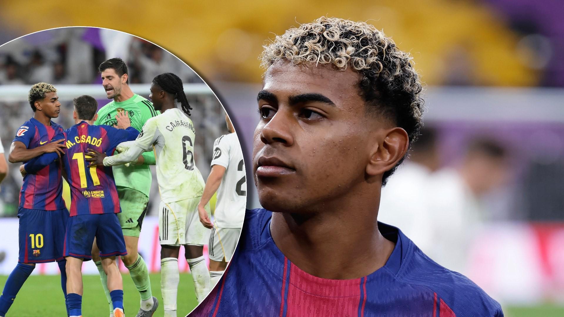 这场万众瞩目的对决在终场哨响后并未真正结束。当比赛进入补时阶段,场上的紧张气氛已达到沸点,而亚马尔无意间成为引爆矛盾的导火索。皇马后卫卡瓦哈尔率先走向这位国家队队友,用挑衅性的手势重复着"说啊,说啊,少说点吧",瞬间将双方球员卷入混战。身高2米的库尔图瓦也挤入人群,这场涉及十余名球员的口角持续了近一分钟,直到裁判介入才平息。