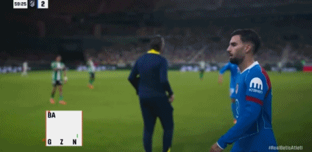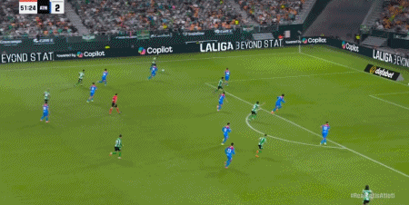上半场补时阶段,马竞再下一城。阿尔瓦雷斯在左路突破后送出助攻,巴埃纳兜射远角破门,将比分扩大为2-0。这一进球彻底浇灭了贝蒂斯反扑的希望。
