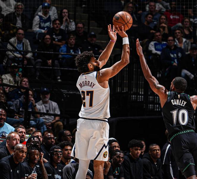 好在约基奇在第三节终于等来了队友的复苏,穆雷和替补登场的小哈达威同时爆发。其中,穆雷单节12投7中狂砍23分,小哈达威5次出手全部命中,飙下了15分。靠着二人的强大火力,掘金单节轰下45分,一举实现了反超。