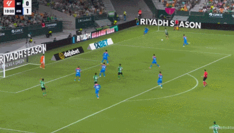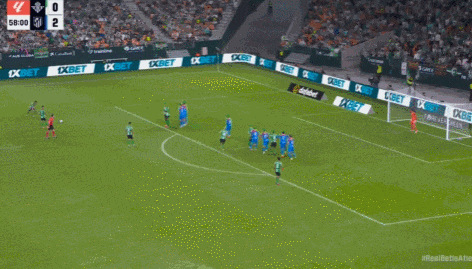 易边再战,贝蒂斯加强攻势。第52分钟,洛塞尔索抽射被奥布拉克没收。第59分钟,阿布德定位球击中横梁,贝蒂斯再次错失进球良机。(图4:阿布德定位球中框)