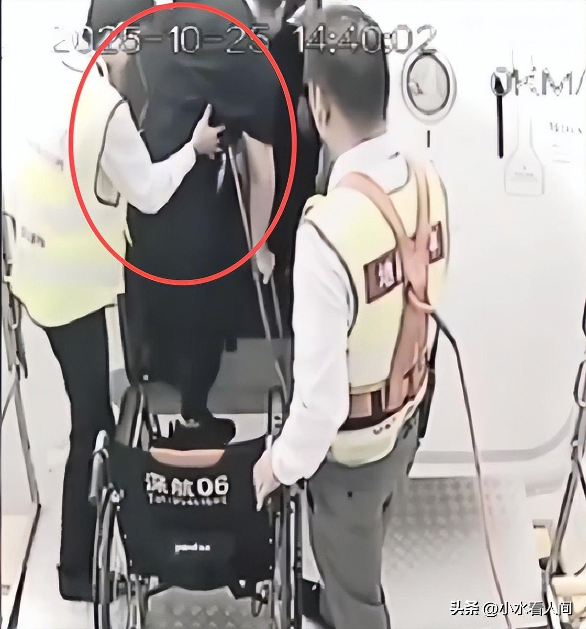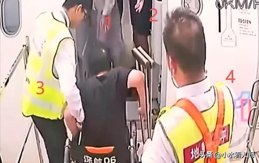 但是现场两个工作人员全程耐心帮着郑智化,机舱里的两个空姐也伸出手帮忙。