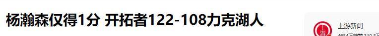 相关报道:上游新闻(杨瀚森仅得1分 开拓者122-108力克湖人2025.10.28)