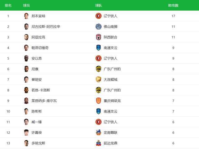 本赛季在中甲赛场,邦本宜裕交出了4球17助攻的恐怖数据,一人独造21球。在中甲助攻榜上,他以17次助攻遥遥领先,比第二名多出6次。在联赛仅剩2轮的情况下,这位日本中场已基本锁定中国职业联赛历史上首位日本籍助攻王的头衔。