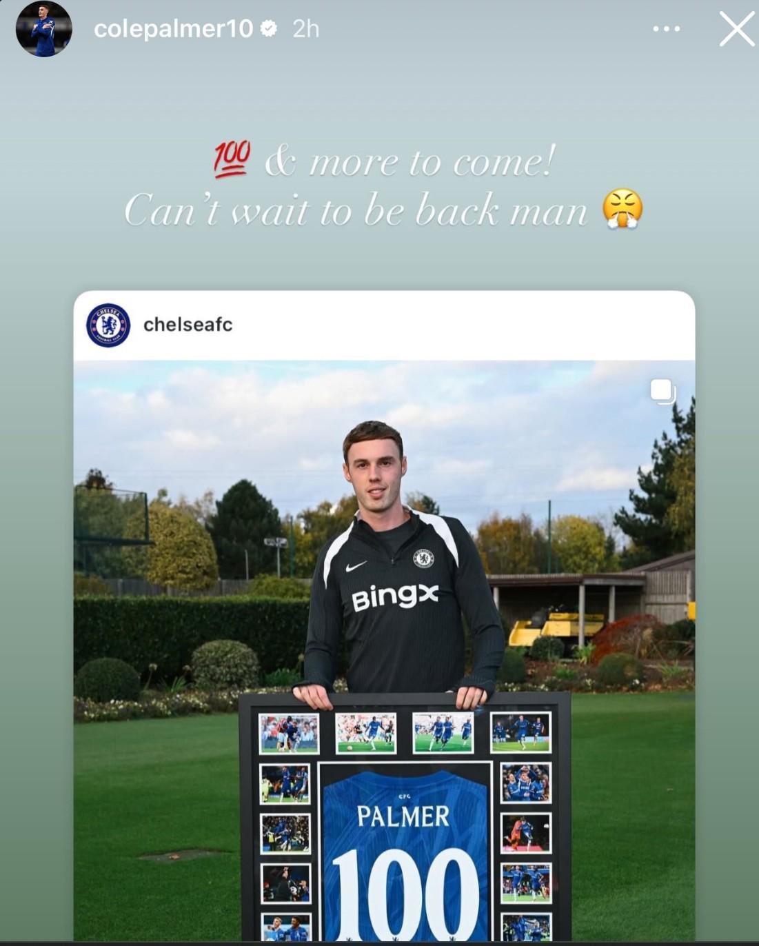 帕尔默自加盟切尔西以来,凭借出色的表现和不懈的努力,迅速在球队中站稳脚跟。截至目前,他已经代表切尔西在各项赛事中出场超过100次,这一成就对于任何一名年轻球员来说都是难能可贵的。为了表彰他的贡献,当地时间10月28日,切尔西俱乐部特意为他准备了一份特别的纪念礼物。