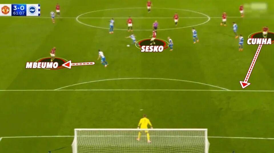 在曼联4-2击败布莱顿的比赛中,姆贝莫梅开二度锁定了胜局,他本赛季已经打入5球。其中最后一球就是中卫埃登·海文大力传球,B费巧妙一漏,姆贝莫果断射门入网。这一精彩的配合也成为了赛后球迷们热议的话题。