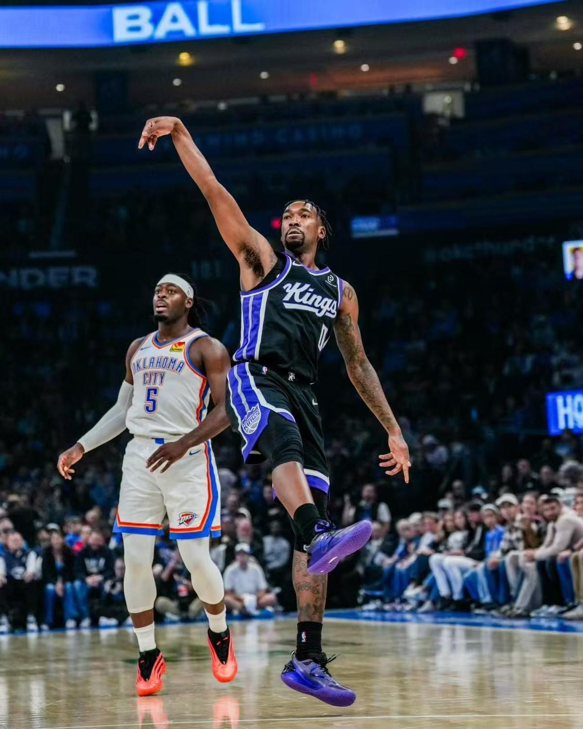 易边再战,两队状态均有所下滑,连续投篮打铁,进攻打得并不顺畅。亚历山大靠着个人能力,连投带罚不断取分,成功在3节时间内砍下20+,也实现了自己连续77场20+的纪录。然而,雷霆的形势却并不乐观,始终被国王队压制。进入关键时刻时,球队还落后了7分。可就在国王稳稳占据着优势时,球队却突然进攻失灵,连续进攻打铁。雷霆则丝毫没有客气,轰出一波11:0的进攻波,一举反超比分。拉文罚球为国王止血,但雷霆并没有给国王翻盘的机会,最终以107:101拿下国王,豪取5连胜。