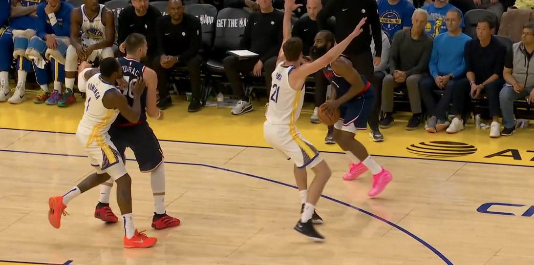 然而,到了第三节,哈登的表现却急转直下。打了不到一半就被换下,期间还被库里生断。保罗带着轮转阵容登场,但进攻端缺乏投篮点,防守端也漏洞百出。单节比赛,勇士以32-14大比分领先,带着15分的优势进入末节。