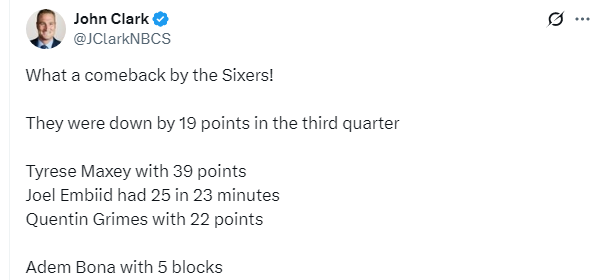 随着恩比德伤愈归来,拥有双核驱动的76人已成为东部冠军的有力争夺者。而马克西的持续进化,不仅让费城球迷看到复兴希望,更让整个联盟意识到:又一位超级巨星正在冉冉升起。