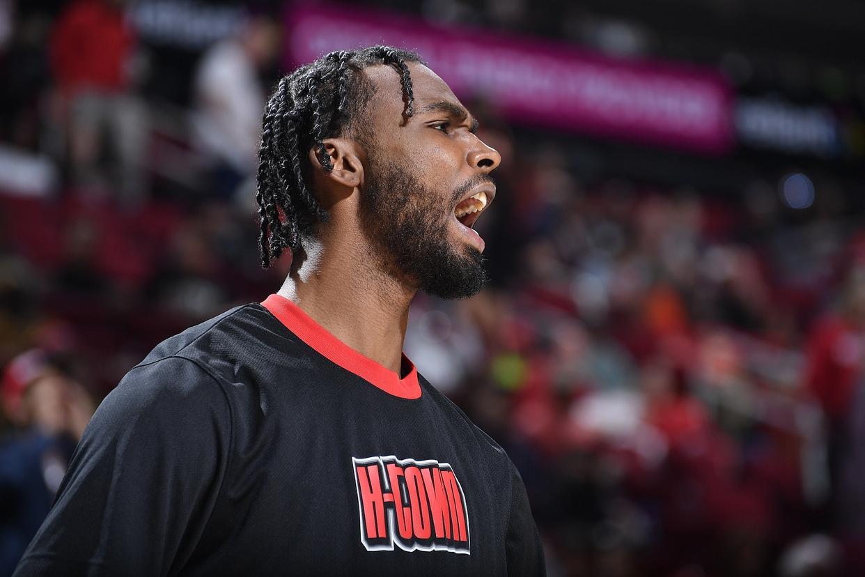 值得注意的是,本场比赛除了火箭队传统的9人轮换外,还有4位第三阵容的球员得到了登场机会。在第4节过半,火箭队已经领先近30分的情况下,乌度卡教练大手一挥,将几位替补换下场,让戴维森、霍勒迪两位替补控卫出战。而火箭队的老将杰肖恩·泰特本赛季也是首次登场,此前因脚踝伤势一直缺席季前赛和常规赛。老将杰夫·格林也在比赛时间还剩下4分钟时得到了上场机会,39岁的他继续为火箭队征战新赛季。