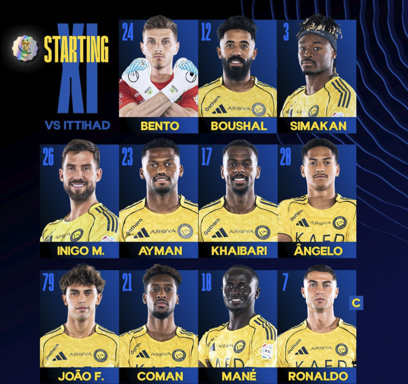 比赛开场仅15分钟,迪亚比在反击中妙传本泽马,后者不停球直接推射,攻破了利雅得胜利的球门,为吉达联合首开纪录。然而,利雅得胜利并未放弃,第30分钟,C罗从中锋位置移至左路,接球后下底传中,制造了极大威胁。对手后卫解围不远,博尔热斯跟进爆射破门,将比分扳平为1-1。