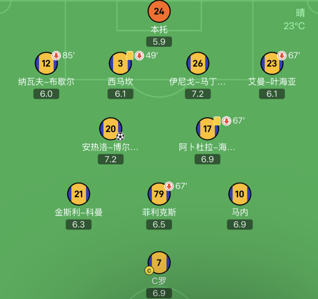 本场比赛,利雅得胜利表现最差的球员无疑是门将本托。全场比赛,吉达联合仅3次射正球门,但利雅得胜利却丢了2球。面对本泽马和奥亚尔的射门,本托反应迟缓,近角和远角都未能守住,赛后评分仅为5.9分,位列全队倒数第一。