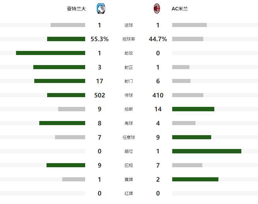 在意甲第九轮联赛中,AC米兰客场挑战亚特兰大。本场比赛,今夏加盟球队的里奇带球入场,为AC米兰取得了1-0的梦幻开局。然而,卢克曼在上半场的进球让双方重回同一起跑线。下半场,双方均未能再破门,最终以1-1握手言和。