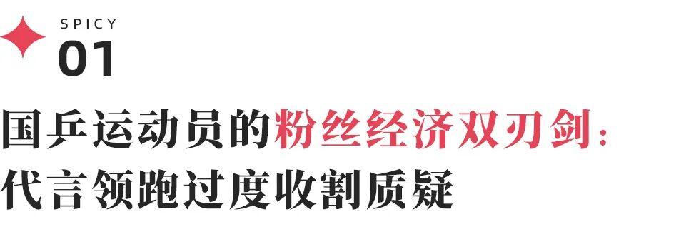剁椒Spicy观察发现,国乒过度密集、同质化,尤其集中于中低端快消品的代言,正在不断消耗粉丝的购买力和热情,导致单次代言效果被显著稀释。对于品牌来说,过度追求短期销量冲高,可能模糊品牌的核心价值主张,难以建立持久的品牌形象。而一旦因为急于收获销量转化而产生明显的“催氪”姿态,甚至会得不偿失,遭到舆论反噬。