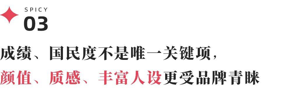 当高安全性和国民度的“安全牌”选择有限或叙事单一不能满足需求时,拥有极致颜值、特定人设或能制造话题的运动员,成为品牌触达特定圈层的差异化选择。而时尚、美妆、潮流、年轻化品牌等,更看重与自身调性匹配的视觉形象、个性态度或生活方式表达,此时运动员的颜值、风格、态度可能比单一的成绩光环更具吸引力。无论如何,只要能打破传统“冠军叙事”的单一框架,都能够为品牌提供更丰富的叙事空间。