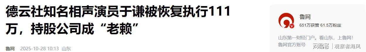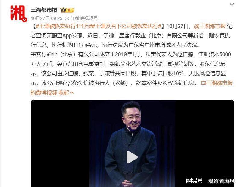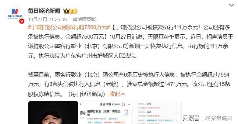 于谦的巨额资产更是足以轻松覆盖111万债务。