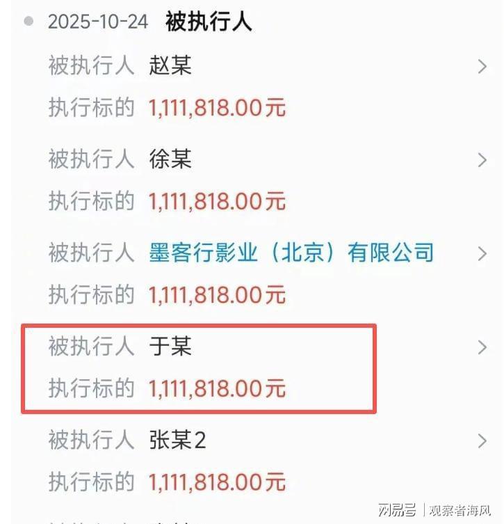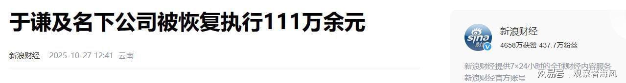 “于谦被执行111万”的词条,突然间冲上热搜。