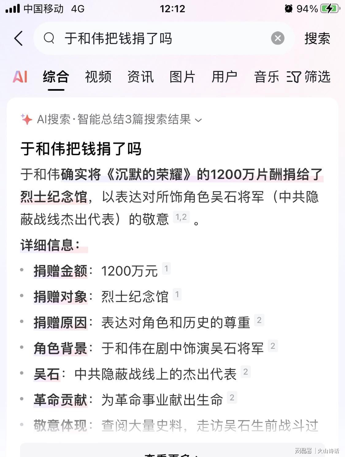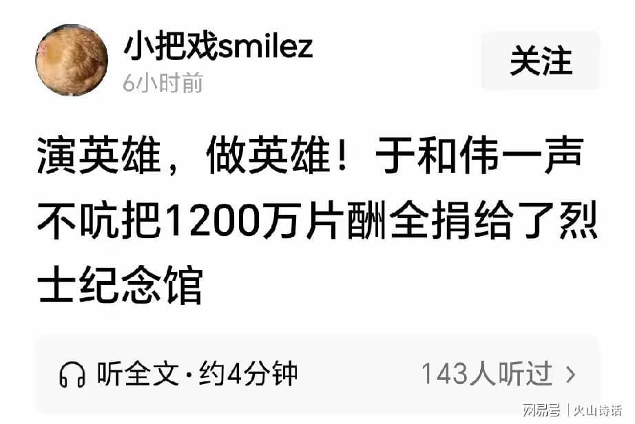 在《沉默的荣耀》里,他饰演的角色与烈士们实现了一次跨越时空的对话;在现实生活中,他用1200万片酬搭建起一座连接历史与当下的精神桥梁。这座桥梁,不仅让观众记住了剧中的英雄,更让人们对历史有了更深的敬畏。