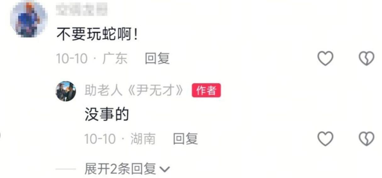 此前,已有网友劝告老尹停止玩蛇,但他并未重视,甚至回复“自己不怕”“没事”。据知情人透露,此次老尹直播挖蛇洞是为防止蛇伤人,不料在挖掘过程中被咬。如今想来,他轻视危险的态度或许早已埋下隐患。