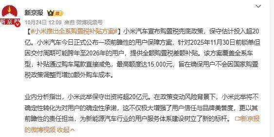 值得注意的是,10月底,雷军官宣“跨年购置税补贴计划”,全系车型覆盖、主动承担延迟交付风险的规模,在行业内实属罕见。