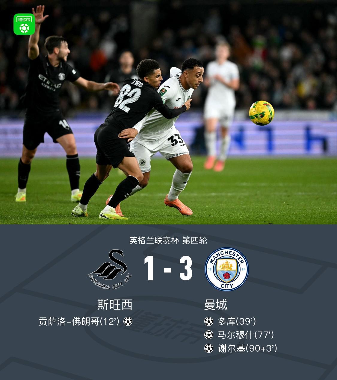 比赛进入尾声阶段,曼城依然掌控着场上节奏。第90+3分钟,谢尔基在禁区内接到队友传球后,冷静低射破门,曼城3-1锁定胜局。这一进球彻底浇灭了斯旺西反扑的希望,曼城成功晋级下一轮。