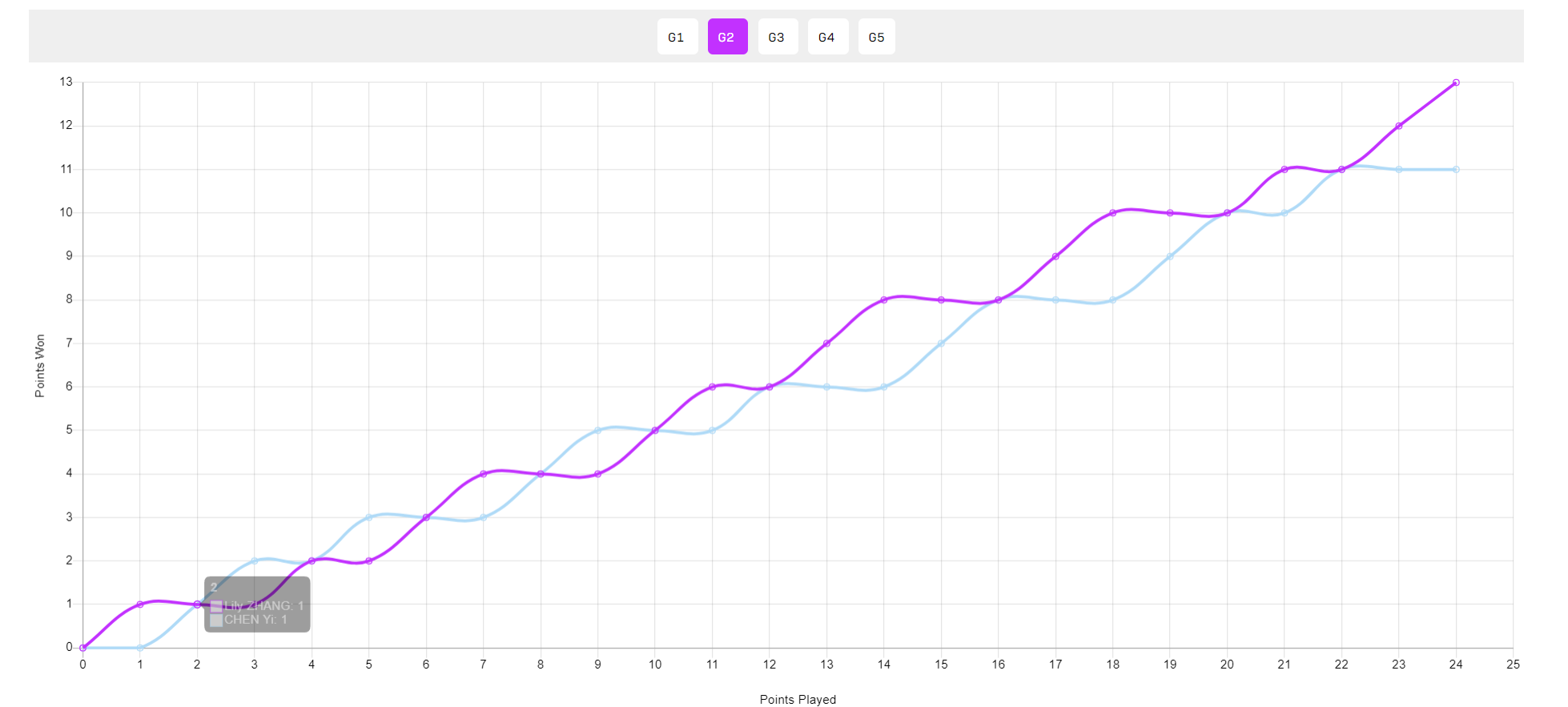 比赛伊始,陈熠迅速进入状态,首局以11-7轻松拿下。然而,第二局张安调整战术,发球和攻势变得异常凌厉,双方比分紧咬,从1-1一直战至11-11。关键时刻,张安抓住机会,连续得分完成大逆转,以13-11扳回一局。这一局的失利让陈熠意识到,接下来的比赛将更加艰难。