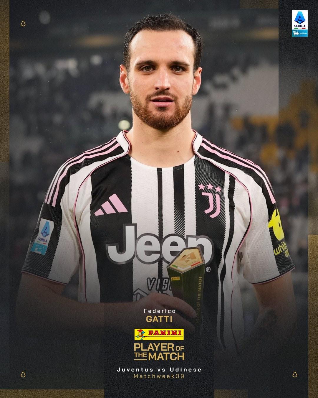 北京时间今日凌晨,意甲联赛第9轮焦点战中,尤文图斯坐镇主场迎战乌迪内斯。最终凭借费代里科-加蒂的制胜头球,斑马军团以3-1的比分全取三分。赛后官方宣布,这位后防铁闸以攻防两端的统治级表现当选本场最佳球员。