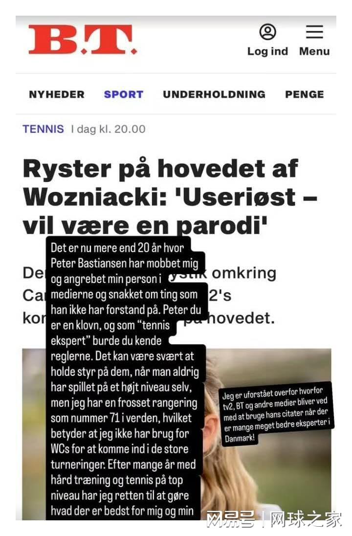 丹麦媒体BT近日发布了一篇关于沃兹尼亚奇复出可能性的分析文章,其中引用了网球专家Peter Bastiansen的观点,称“如果沃兹尼亚奇决定复出,那将是轻率的”。这一评论迅速成为舆论焦点,并直接点燃了当事人的怒火。