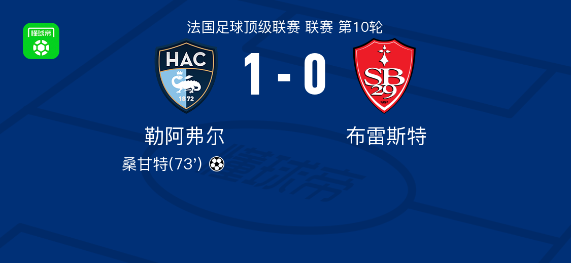 北京时间10月30日凌晨,法甲联赛第10轮迎来一场焦点对决,勒阿弗尔坐镇主场迎战布雷斯特。经过90分钟激战,勒阿弗尔凭借桑甘特的制胜进球,以1-0的比分力克对手,全取三分。