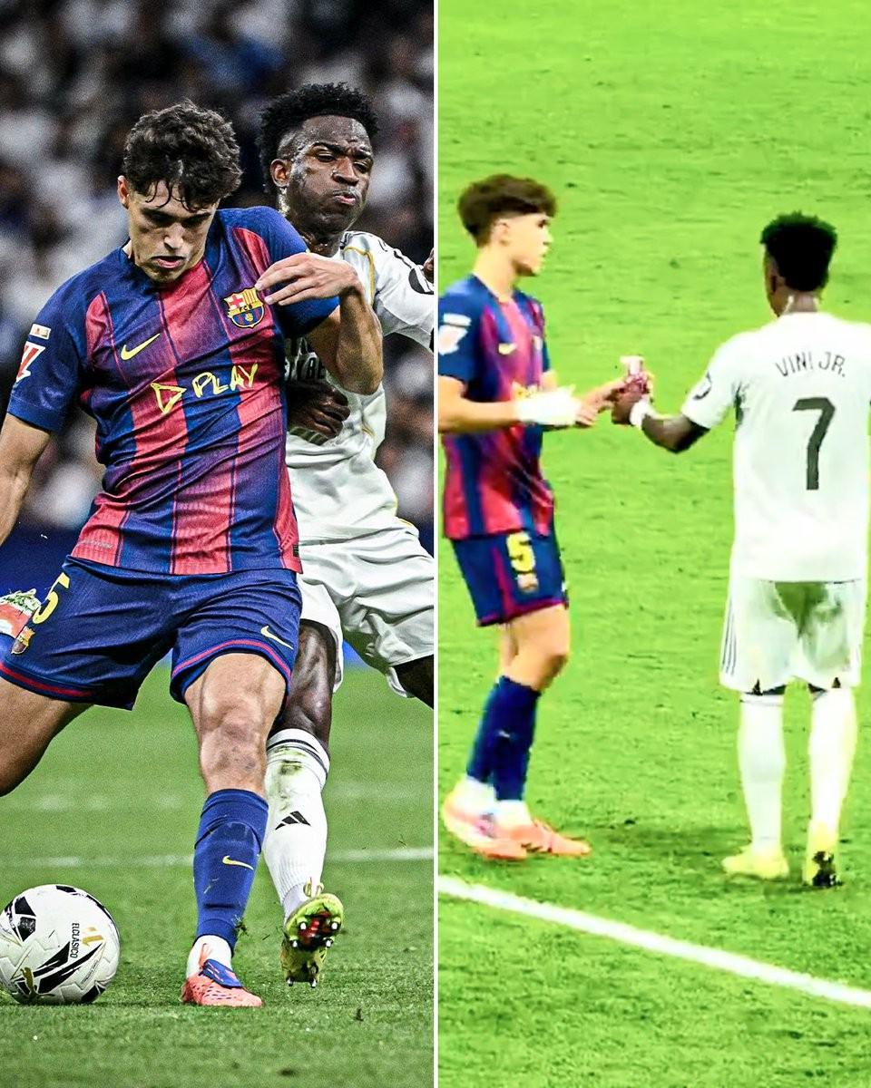上周末的西班牙国家德比,无论是场外还是场内都充斥着紧张的氛围,甚至出现了多次冲突。然而,在这场充满火药味的对决中,却上演了一幕令人动容的友好画面——皇马前锋维尼修斯与巴萨后卫库巴西在比赛期间共饮一瓶水,展现了足球运动中的温情与尊重。
