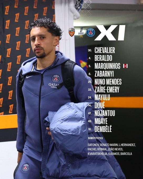 北京时间10月30日凌晨2:00,法甲联赛第10轮迎来一场焦点对决,巴黎圣日耳曼客场挑战洛里昂。赛前,巴黎圣日耳曼官方公布了本场比赛的首发阵容,登贝莱领衔出战,杜埃、马尤卢、恩贾恩图等球员悉数登场。
