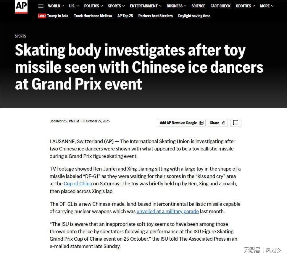 事件引起了多家国际主流媒体的关注,美联社、英国《卫报》等均对此进行了报道。在舆论压力下,国际滑联于10月26日向美联社发布声明,确认已知悉“观众向选手投掷了不合适的玩偶”,并表示对此感到遗憾,同时承诺将对此事展开调查。