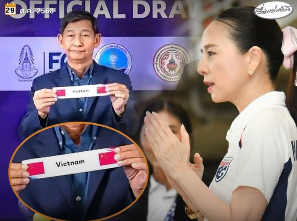 据现场视频显示,当泰国足协工作人员抽取到越南队签条时,展开的纸条两侧本应印有越南国旗,但实际展示的却是五星红旗。更令人震惊的是,这一明显错误在抽签仪式全程未被察觉,泰国足协甚至将包含错误画面的视频发布至官方社交媒体平台,导致事件迅速发酵。