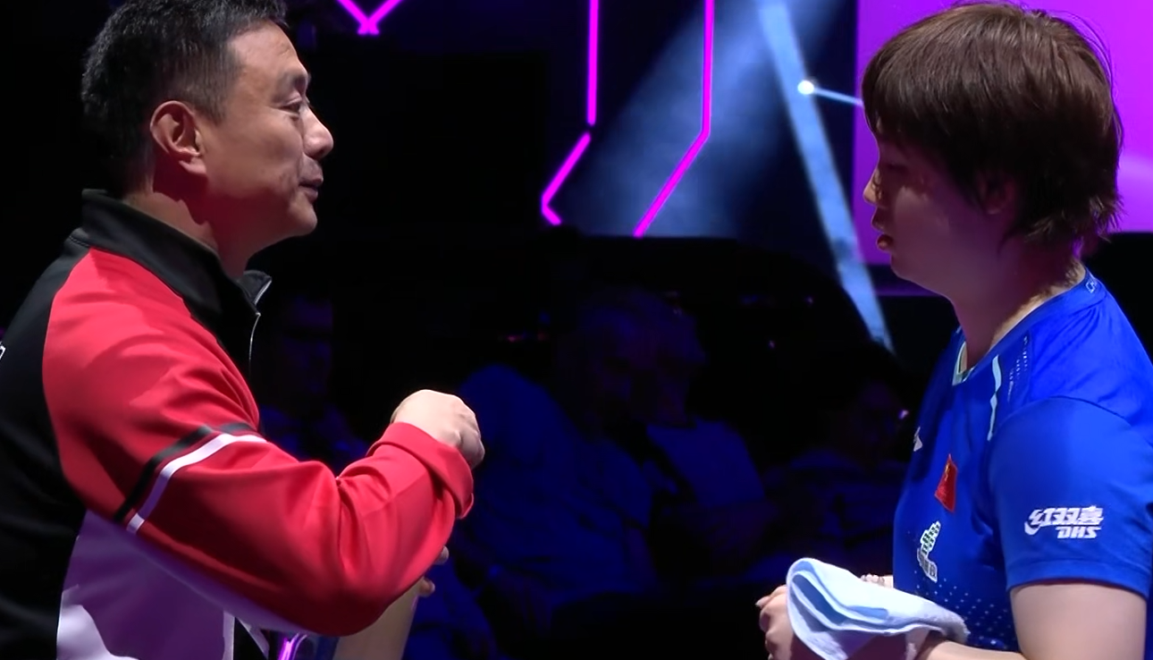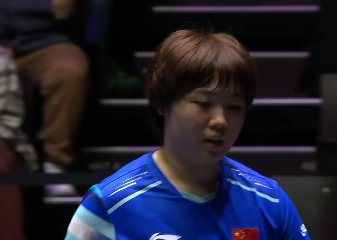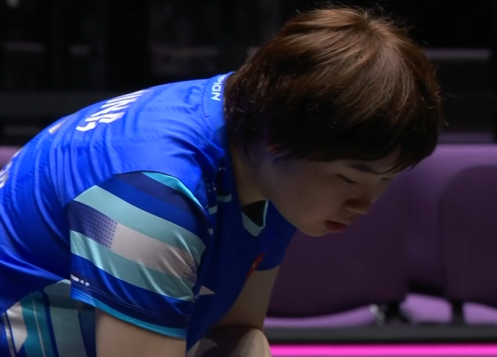 首局比赛,金娜英表现得非常坚定,通过主动搓长和上手进攻,迅速取得5-1的领先。不过蒯曼及时调整状态,适应了对手的战术套路,通过反手和中间位的变线连续追分,局末追至8-9并迫使对手暂停。然而,暂停后蒯曼连续出现失误,最终以8-11丢掉首局。