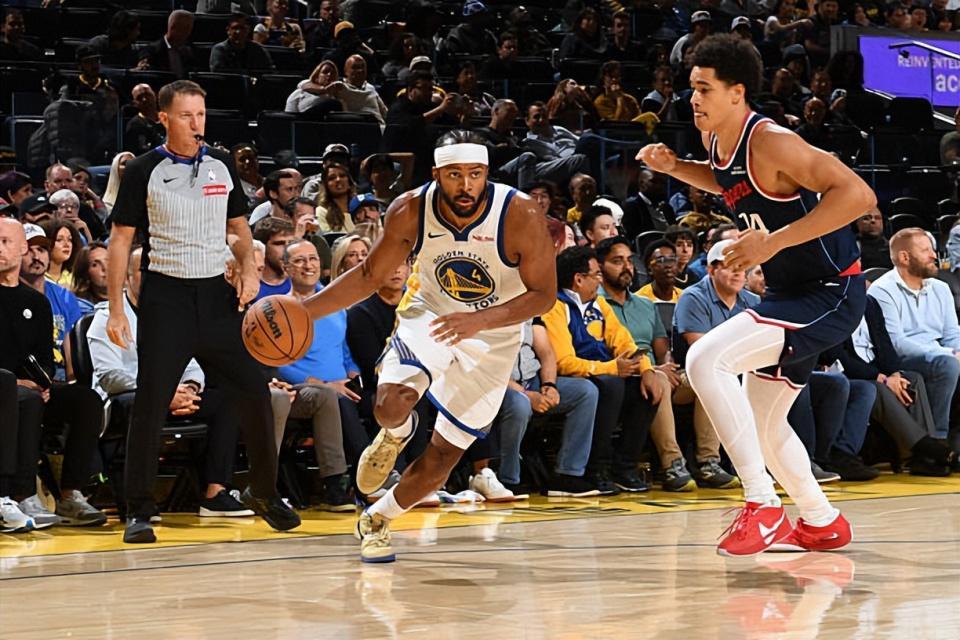 本场比赛,穆迪作为先发侧翼登场21分52秒,以9投3中(三分7中3)的效率贡献9分3篮板2助攻1抢断,正负值高达+18。尽管数据不算华丽,但他在攻防两端的隐形贡献不容忽视:进攻端通过三分投射为球队拉开空间,防守端则成功限制快船核心科怀·伦纳德(Kawhi Leonard),多次制造其进攻阻碍。这种“不占球权却能改变局势”的特质,正是勇士当前阵容所需。