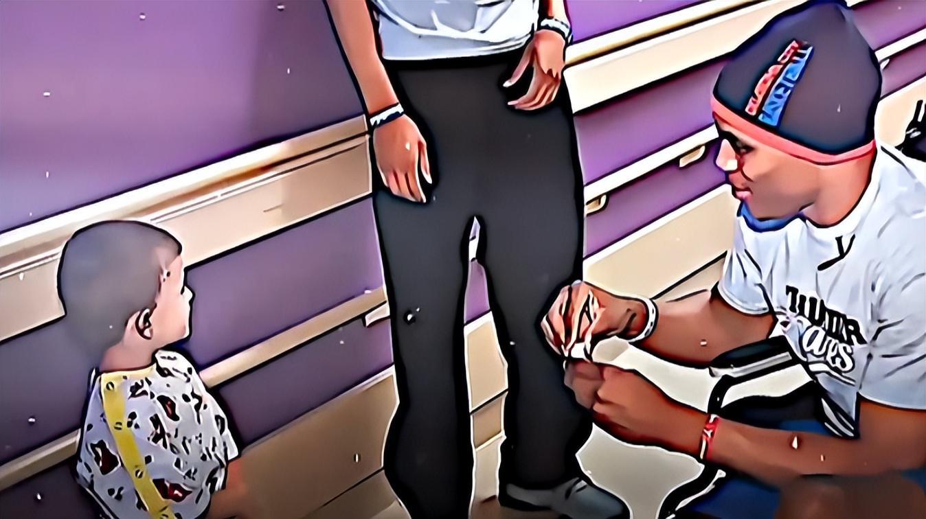 2015年全明星MVP奖杯还没焐热,威少就把赞助商送的起亚汽车开到了郊区。单亲妈妈冈萨雷斯抱着两个孩子泪流满面,她没想到偶像承诺的"礼物"竟是能载着全家安稳生活的汽车。"你为家拼了所有,这是你该得的。"威少轻拍她的肩膀说道。