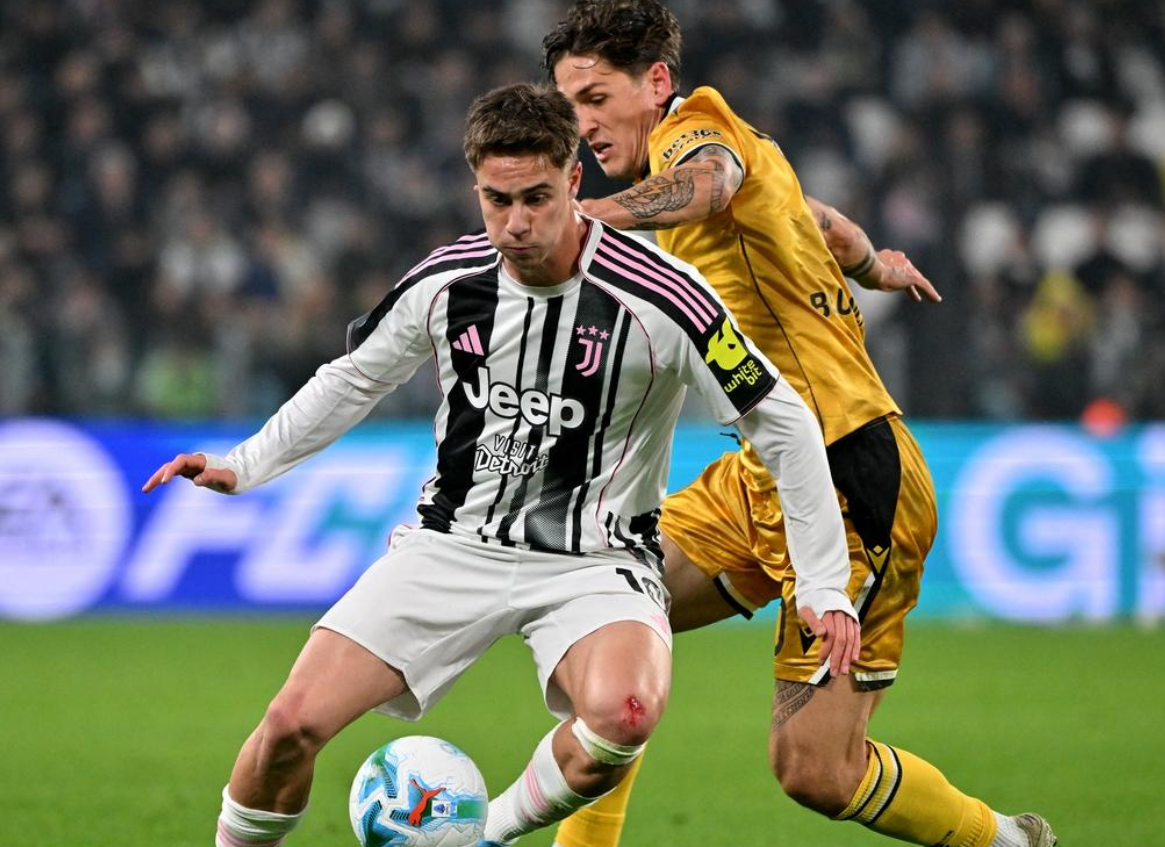 本场比赛尤文图斯排出4142阵型,首发阵容总身价高达3.33亿欧元,形成对乌迪内斯(7460万欧元)的绝对压制。奥蓬达与弗拉霍维奇组成锋线双煞,坎比亚索、麦肯尼、伊尔迪兹和科斯蒂奇构建中场屏障,洛卡特利单后腰坐镇,卡卢卢、加蒂和劳埃德-凯利组成三中卫体系,迪格雷戈里奥把守球门。这套豪华阵容在开场阶段便展现强势姿态。