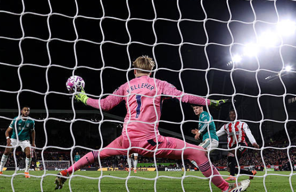 上半场利物浦错失三次黄金机会:加克波内切被绊倒未获点球,亨德森远射擦柱偏出,萨拉赫单刀被门将没收。反观布伦特福德,沙德第45分钟单刀破门源于中场屏障失效——索博斯洛伊与琼斯的防守形同虚设,达姆斯高直塞轻易打穿防线。科尔克兹补时阶段推射破门虽燃起希望,但更多属于混乱中的意外收获。