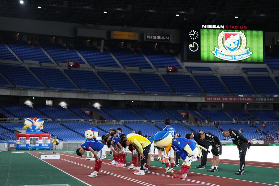 2025年5月21日,横滨水手队在主场1比2负于神户胜利船队,赛后球员和教练向球迷鞠躬致歉