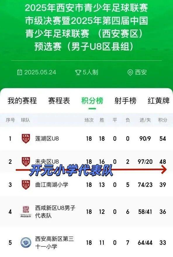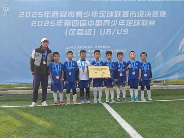 绿茵场上激情燃烧,捷报频传振奋人心!近日,在2025年西安市青少年足球联赛市级决赛暨第四届中国青少年足球联赛(西安赛区)男子U8区县组比赛中,未央区开元小学三年级足球队以非凡的毅力和出色的团队配合,经过18场激烈比拼,最终荣获市级亚军,为学校赢得了荣誉!