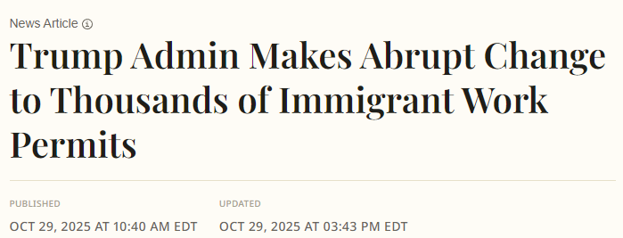 在政府部分机构面临关门风险、数据系统可能中断的敏感时刻,美国移民局突然抛出一项重磅新规——自明天(10月30日)起,数百万外籍劳工的工作资格将面临“断档危机”。这一政策调整将直接影响在美国合法工作的非公民群体。